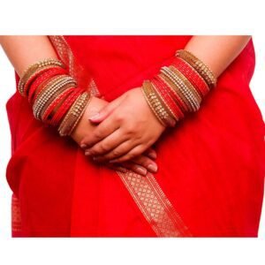 कांच की लाल चूड़ियां देखने में सिंपल होती है लेकिन यह डेली वेयर में आपके एथेनिक लुक्स पर खूब जचती है, इन बैंगल्स को ज्यादातर महिलाएं डेली वियर में पहनना पसंद करती हैं क्योंकि यह सिंपल होती है जिससे हाथों को कंफर्ट और स्टाइल कब परफेक्ट टच मिलता है, Red Glass Bangles Set मैं आप सिंपल रेड चूड़ियों के साथ गोल्ड प्लेटेड बैंगल्स को आगे और पीछे लगाकर खूबसूरत सेट बना सकती है, जिससे आपके गोरे हाथों पर यह सेट खूबसूरती के साथ दमक उठेगा।