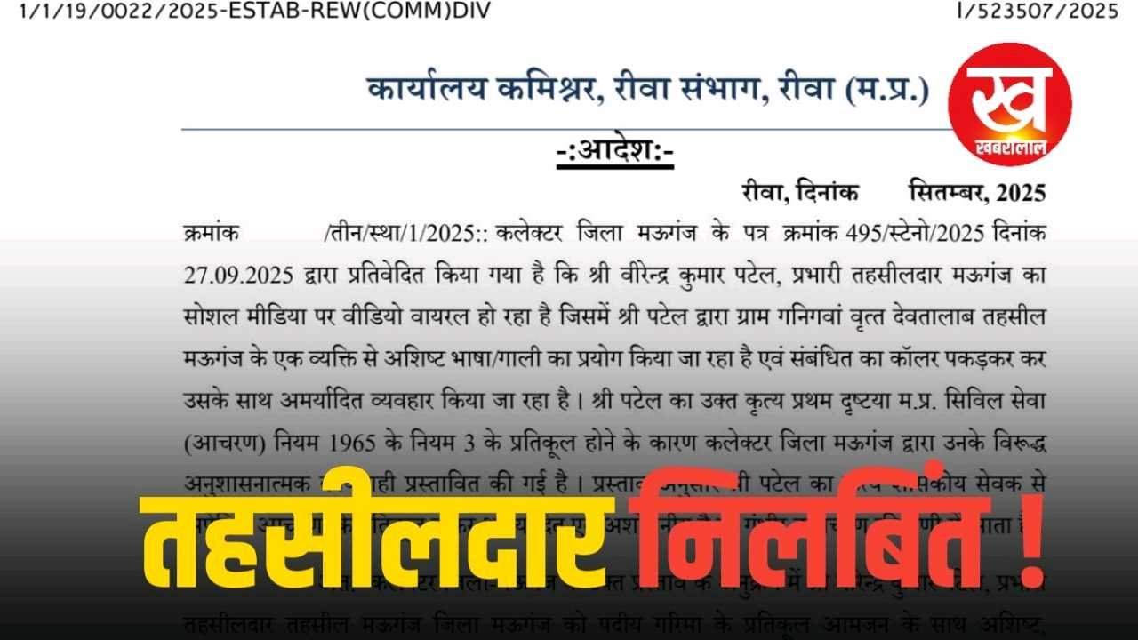 तहसीलदार ने खोया आपा, किसान की कालर पकड़कर की गाली-गलौज, गनिगवां गांव का मामला, वीडियो वायरल, संभागीय आयुक्त ने किया निलंबित मऊगंज जिले मे ...